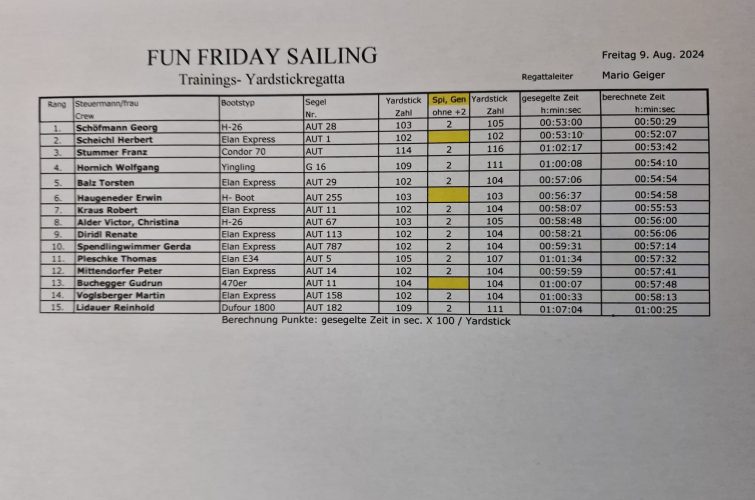 Endergebnis Fun Friday Sailing 2024